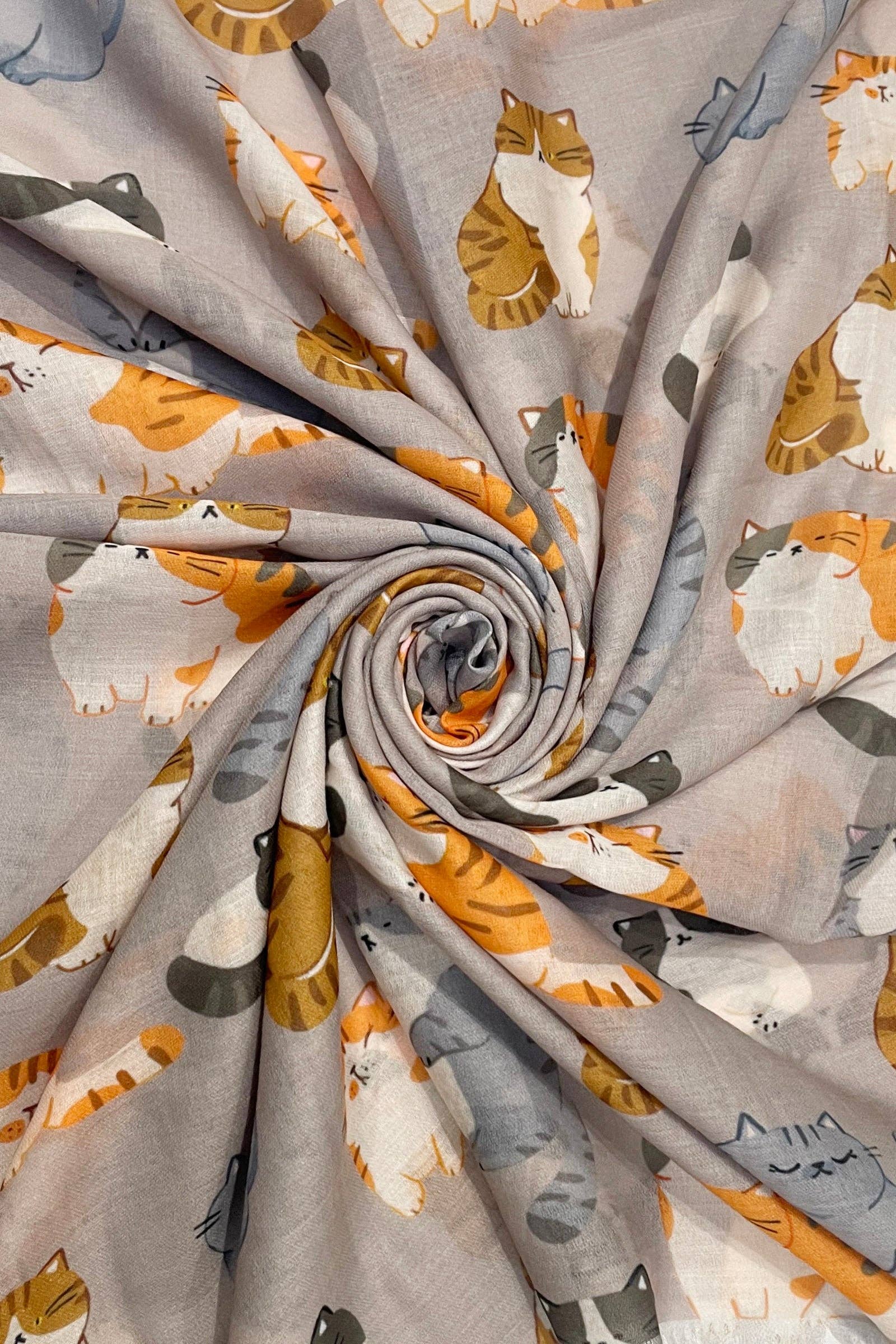 Cuddly Cat/Kitten Print Frayed Scarf